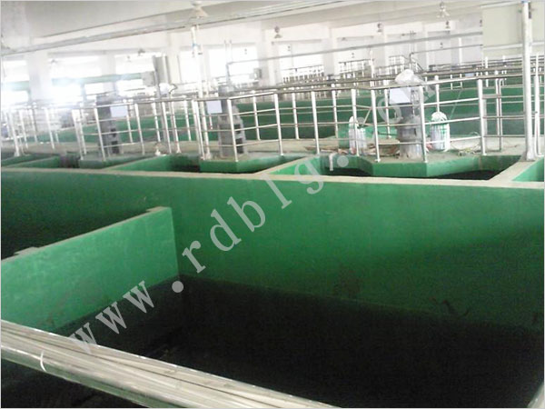 1.玻璃鋼防腐池子用環(huán)氧樹脂、乙烯基樹脂、不飽和樹脂等玻璃鋼樹脂做防腐內(nèi)襯:采用樹脂加玻璃纖維布制作成防腐防水襯層。具體玻璃鋼防腐做法包括一布三油(也稱為一布三涂、一布三膠)、二布四油(涂、膠)、三布五油(涂、膠)、四布六油(涂、膠)、五布七油(涂、膠)、六布八油(涂、膠)、七布九油(涂、膠)、八布十油(涂、膠)、九布十一油(涂、膠)、十布十二油(涂、膠)等(依此類推,油、涂、膠比布多二遍)。施工環(huán)境溫度宜為-15—40℃,相對濕度不宜大于80%。施工環(huán)境溫度低于0℃時,應采取加熱升溫措施。B.防水施工前,應根據(jù)施工環(huán)境溫度、濕度、原材料及工作特點,通過試驗選定適宜的施工配合比和施工操作方法后,方可進行大面積施工。C.防水工程施工現(xiàn)場應防風防塵。在施工及養(yǎng)護期間,應采取防水、防火、防曝曬等措施。D.進行防水工程施工時,不得與其他工種進行交叉施工。